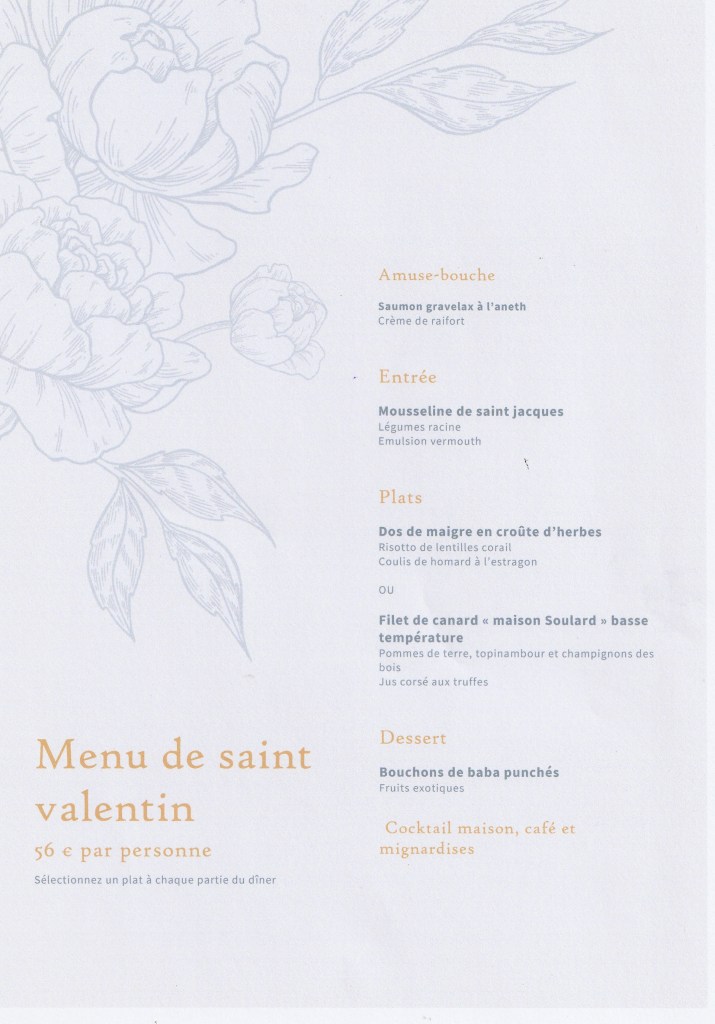 Menu de la saint valentin pour le diner du samedi 13 Février :